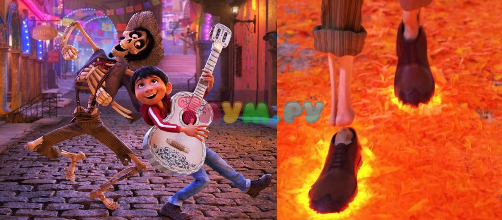 Наше мнение: уже в Стране Мёртвых можно увидеть, что Гектор вечно ходит босоногим, когда происходит его восстановление с семьёй, герой получает ботинки — отличная теория!