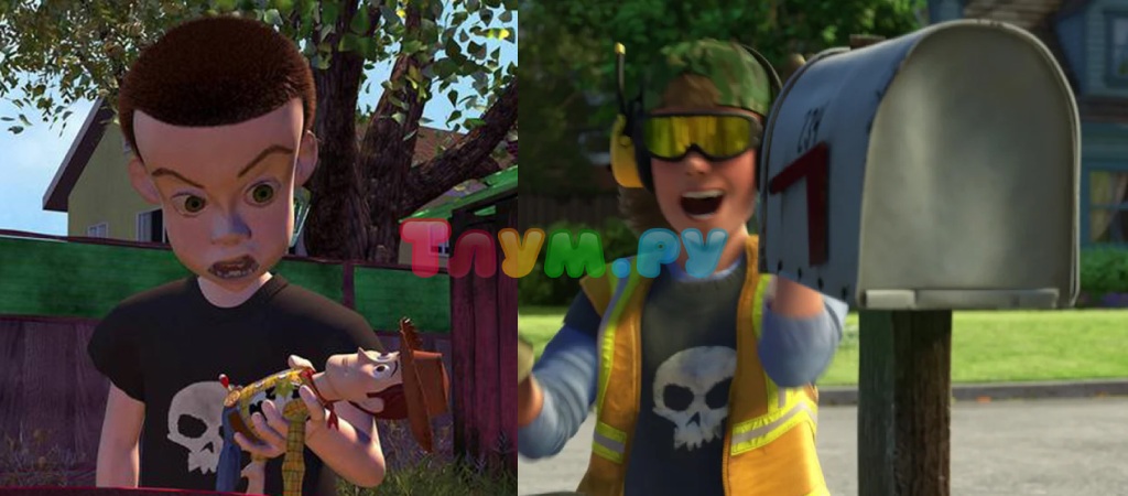 Подкрепление теории: мальчик-садист Сид самолично и в диком стрессе убедился, что игрушки-то живые. Пережив шок и оправившись от потрясения, Сид изменил жизненные взгляды, позврослел, подобрел и выбрал работу, помогающую — внимание! — спасать выброшенные игрушки.