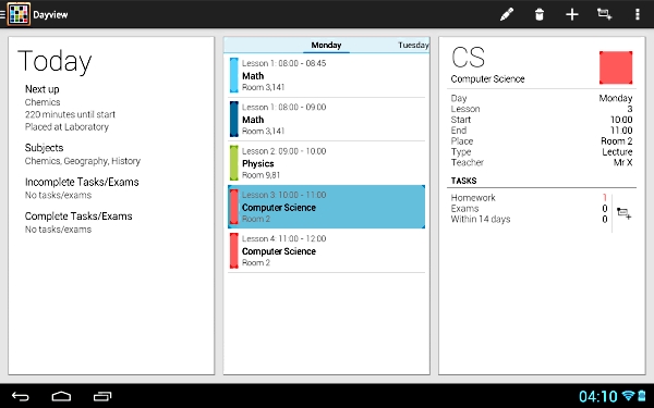 Это яркое и простое в управлении приложение предназначено для организации школьной жизни. Здесь можно сохранять расписание уроков и экзаменов, а также домашние задания. Расписание можно сделать нескучным и очень наглядным, присвоив каждому уроку свой цвет, что поможет быстро ориентироваться в занятиях. Также здесь можно настроить синхронизацию между несколькими устройствами.