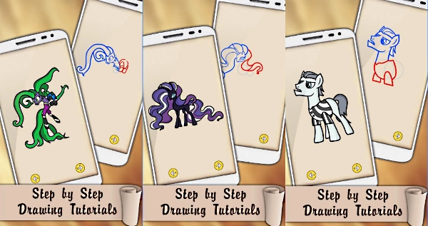 Без сомнения всем любителям компании волшебных пони хочется научиться рисовать их самостоятельно. С этим приложением желание легко воплотится в жизнь! Главное — приложить немного усилий и запастись терпением. Шаг за шагом, следуя инструкциям, юные художники смогут воссоздать на бумаге всех своих любимых персонажей.