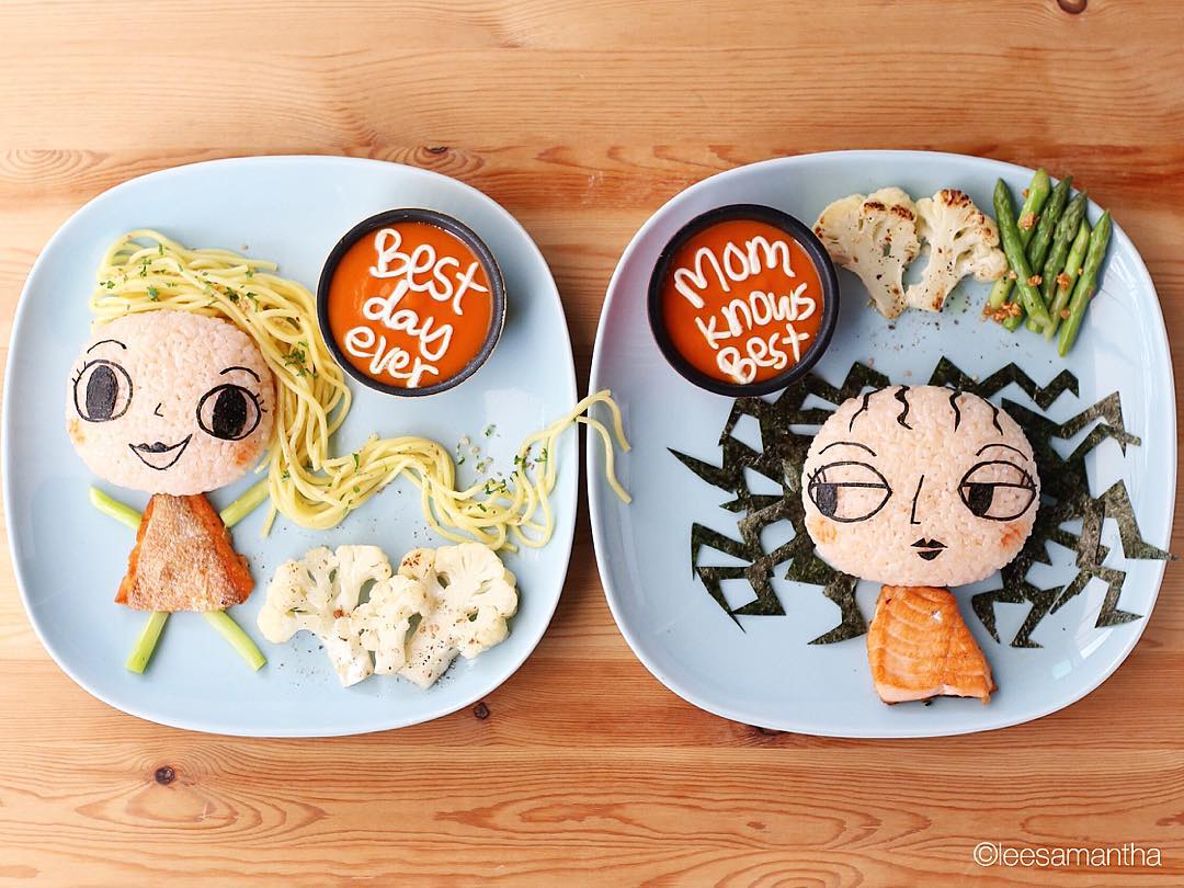 Начала свою высокохудожественную кулинарию Саманта почти десять лет назад. Ее старшая дочь тогда отличалась капризностью в еде, да и традицию изобретательно украшать отправляемый ребенку в сад бенто-обед никто не отменял. На тарелках ребенка стали появляться первые изобразительно-кулинарные опыты, потом Саманта (а ее дети тем более) вошла во вкус, и сейчас у ее страницы в Instagram 715 тысяч подписчиков, всемирная популярность и всяческое почтение.