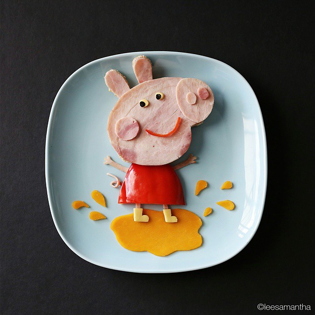 Воплощать Свинку Пеппу при помощи колбасы — своеобразный юмор, но получилось очень аппетитно.