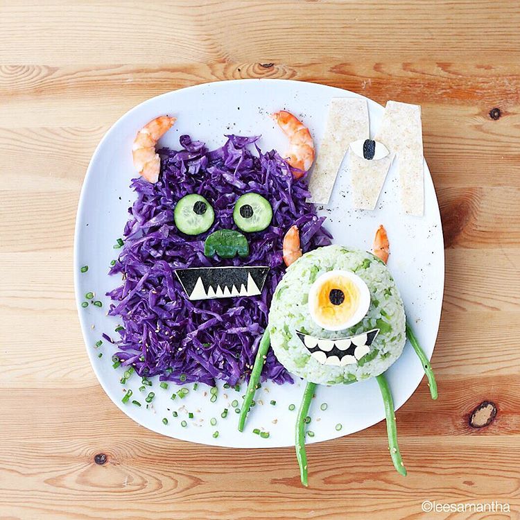 Как видно, дети под подобным «соусом» могут начать питаться гораздо охотнее и правильнее. Вряд ли в обычной нарезке какой-нибудь ребенок охотно ел подобные овощи, но когда это Салли и Майк из «Корпорации монстров», нос воротить не пристало.