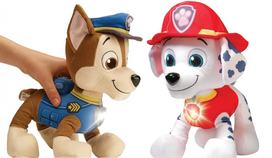 Храбрые персонажи «Щенячьего Патруля» станут лучшими друзьями тех детей, которые просто обожают защищать порядок, выручать пострадавших и придумывать разнообразные игровые сюжеты по мотивам мультсериалов про патрулирование. Плюшевые щенята разговаривают голосами из мультика на английском языке, носят сверкающие в темноте знаки спасателей и прекрасные снимающиеся пластиковые шапки.