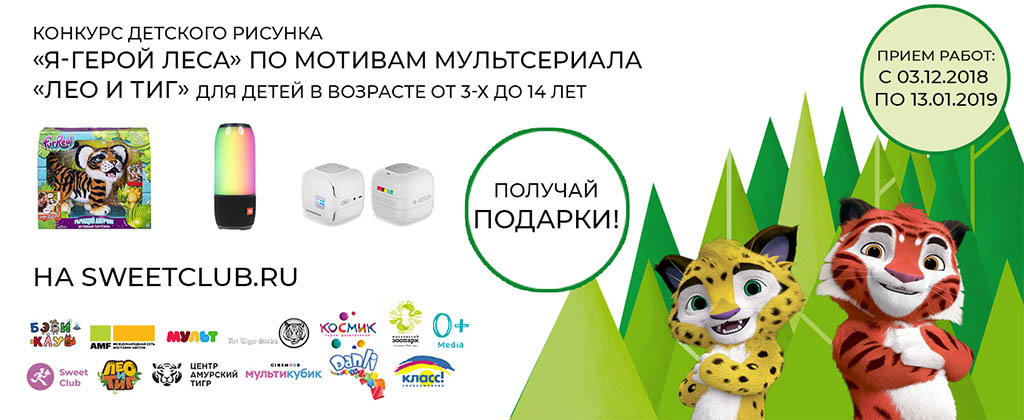 Дальневосточный леопард и амурский тигр — два российских диких кошачьих вида, исчезающих и прекрасных. Их спасение входит в первостепенные задачи по охране нашей природы. Популяризации этих редких зверей посвящён замечательный мультсериал «Лео и Тиг», где действие разворачивается в Приморском крае. А с 3 декабря и совместно со Sweet Club и Центром «Амурский тигр» мы запустили всероссийский конкурс детских рисунков «Я — герой леса».