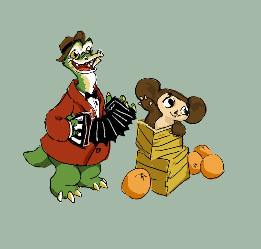 Гена и Чебурашка в особенном стиле художника. Кого вам напоминает такой Гена?