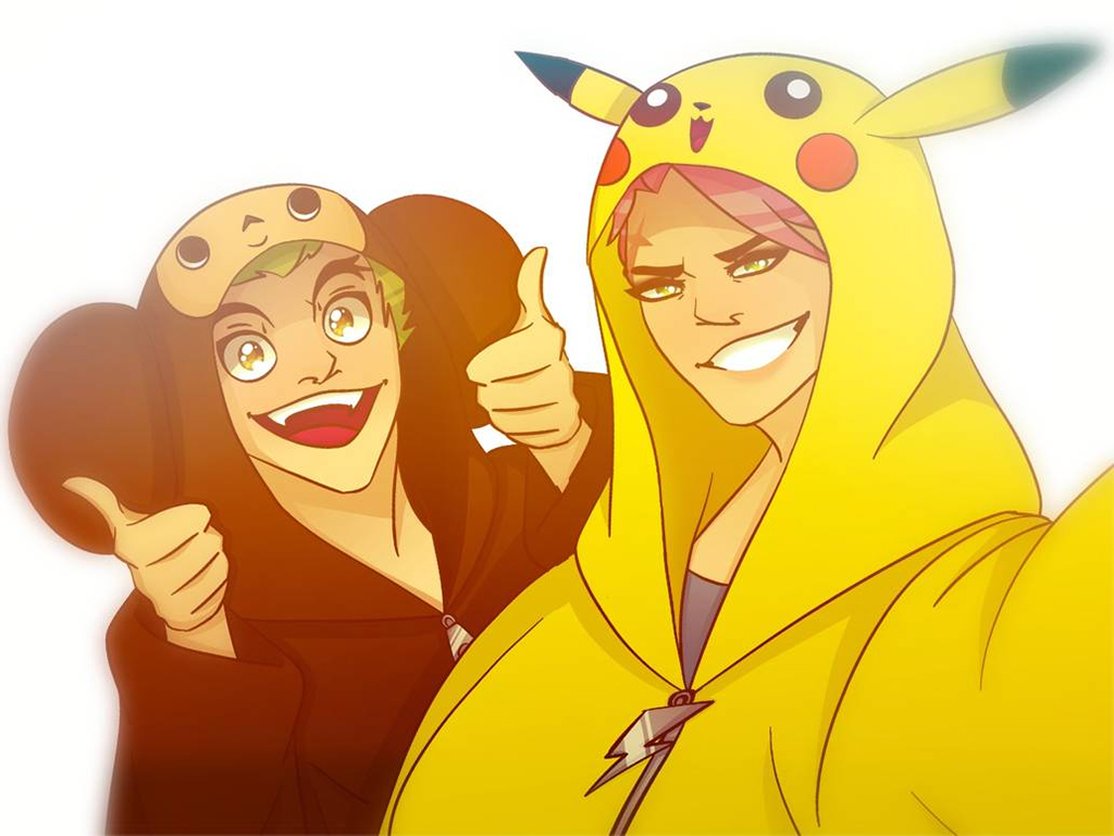 И как же обойтись без ещё одной хуманизации, тем более, что художница выбрала для этого двух самых милых персонажей! Встречайте Чебурашку и Пикачу.