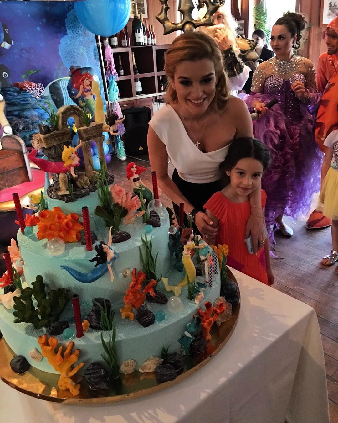 Старшая дочка ведущей «Дом 2» тоже любит мультфильмы, причем настолько, что заботливая мама систематички заказывает дорогие тематические праздники для любимой дочки. Вот, например, вечеринка Мару (на самом деле Маруси, но сокращают именно так) в стиле «Русалочки»: