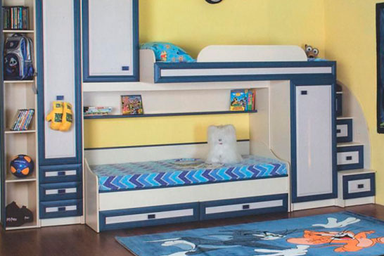Если у вас однополые и дружные дети, то вам вполне подойдет двухъярусная кровать. Старший спит наверху, младший — снизу. Главное, чтобы старший не боялся упасть с высоты и воспринимал это не как «изгнание», а как возможность смотреть на все свысока. И наоборот. Но если метраж позволяет вам поделить комнату на две части, то предпочтительнее отказаться от двух ярусов.