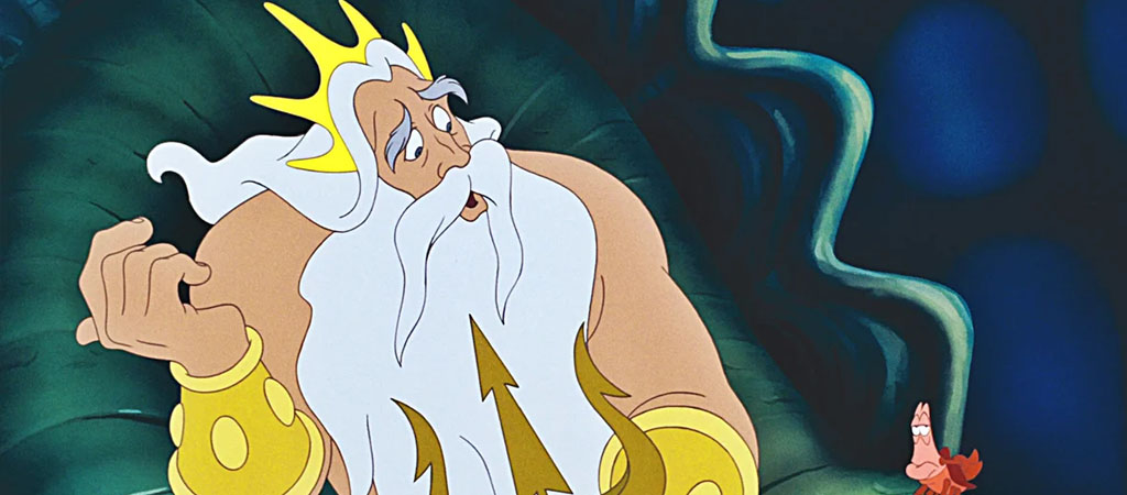 Особенность персонажа: чёрствый отец-одиночка, не знающий, как подступиться к Ариэль, а та ещё и не всех советов слушается и вообще ведёт себя своевольно. Странно, что от стресса из-за временной пропажи дочери Тритон не лишился половины волос на голове.