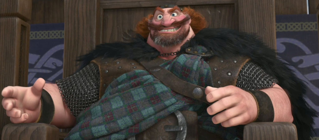 Особенность персонажа: громогласный весельчак Фергус умудряется и жену поддерживать в том, что Мериде пора готовиться к браздам правления, и дочке не давать заскучать, напоминая, что у той самый возраст для проявления своих способностей и талантов.