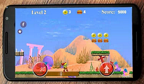 В этой простенькой «аркадной бродилке» от «Dumisoftwork» Губке Бобу предстоит преодолевать уровень за уровнем, собирая сэндвичи, чтобы достичь своей цели. На его пути будут встречаться препятствия, которые можно перепрыгнуть, и разнообразные неприятные существа, в которые можно выстрелить. А вот игроку за смартфоном или планшетом предстоит сражаться еще и с кучей рекламы, которая может выскочить даже посреди уровня в тот момент, когда необходимо подпрыгнуть.