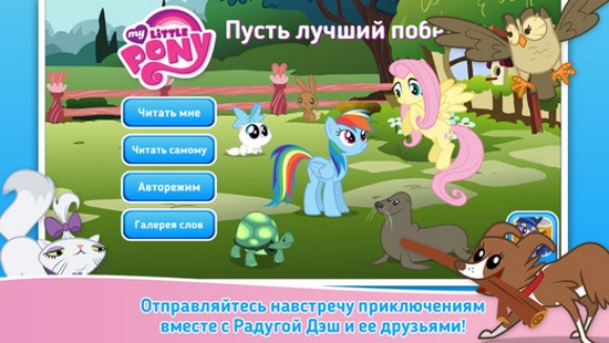 Девиз Радуги Дэш: «Быстрее, круче и выше!». Увидев, как весело проводят время друзья из Понивилля, играя со своими питомцами, Радуга решает присоединиться к ним и выбрать товарища для игр… на свой лад. Она устраивает состязание на звание лучшего питомца. Детей ждет интерактивный рассказ о том, как выбрать питомца, который можно послушать, а можно прочитать самостоятельно. Также в приложении есть раздел «Избранные слова» для практики английского.