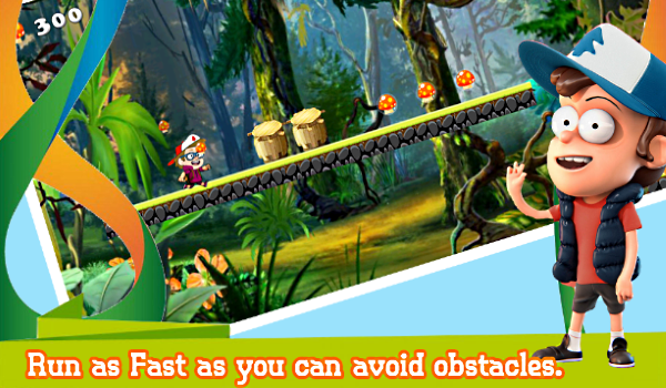 «RedKod Limited» представляет всем фанатам мультсериала «Гравити Фолз» незамысловатую «бегалку-прыгалку» с Диппером в главной роли. Ему предстоит преодолевать уровень за уровнем, перепрыгивая через разнообразные препятствия, и собирая по пути мухоморы. Управление осуществляется простым нажатием на экран.