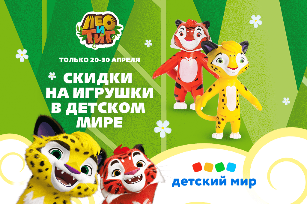 Если ваши малыши являются фанатами «Лео и Тига», то в Детском Мире можно найти фигурки и игровые наборы с персонажами и этого мультсериала.
