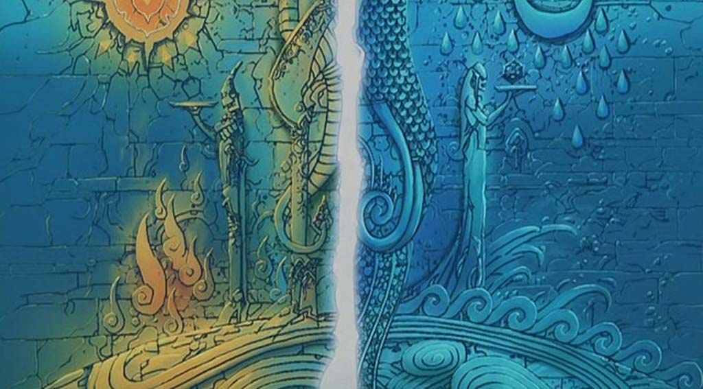 Когда-то Великий космический дракон был разрублен пополам злобным демоном. Гармония вселенной была разделена, и так появились два народа, огненные пиросы и водяные гидросы. У каждого племени — свои «фишки». Пиросы моют руки прямо в огне, вместо слез у них на глазах появляются черные угли, а воды эти огненные люди не просто боятся — они от нее умирают. Зато технически пиросы очень развиты, да и боевые искусства у них в чести.
