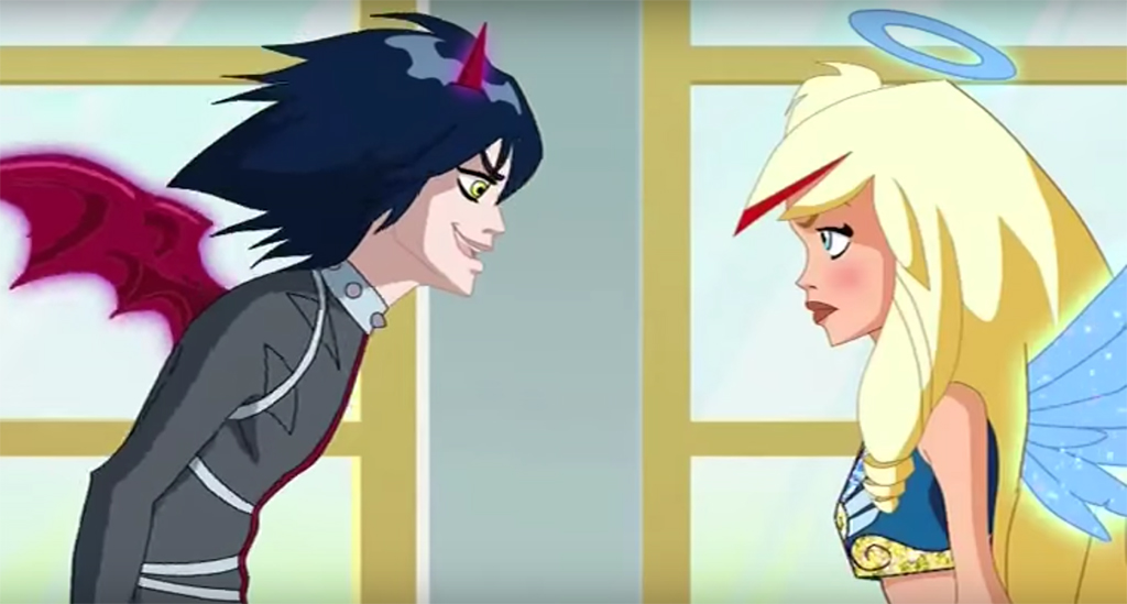 Однако, гораздо глубже эта тема обыграна в трагичных отношениях главной героини по имени Раф и дьявола Сульфуса. Возникшие в первом сезоне сериала запретные чувства (а им по природе запрещено даже касаться друг друга) в полнометражном мультфильме они пытаются погасить, но, разумеется, тщетно. Ради возможности любить они даже готовы пожертвовать своими божественными сущностями и стать обычными людьми — чем не счастливая концовка для этой Джульетты и этого Ромео?