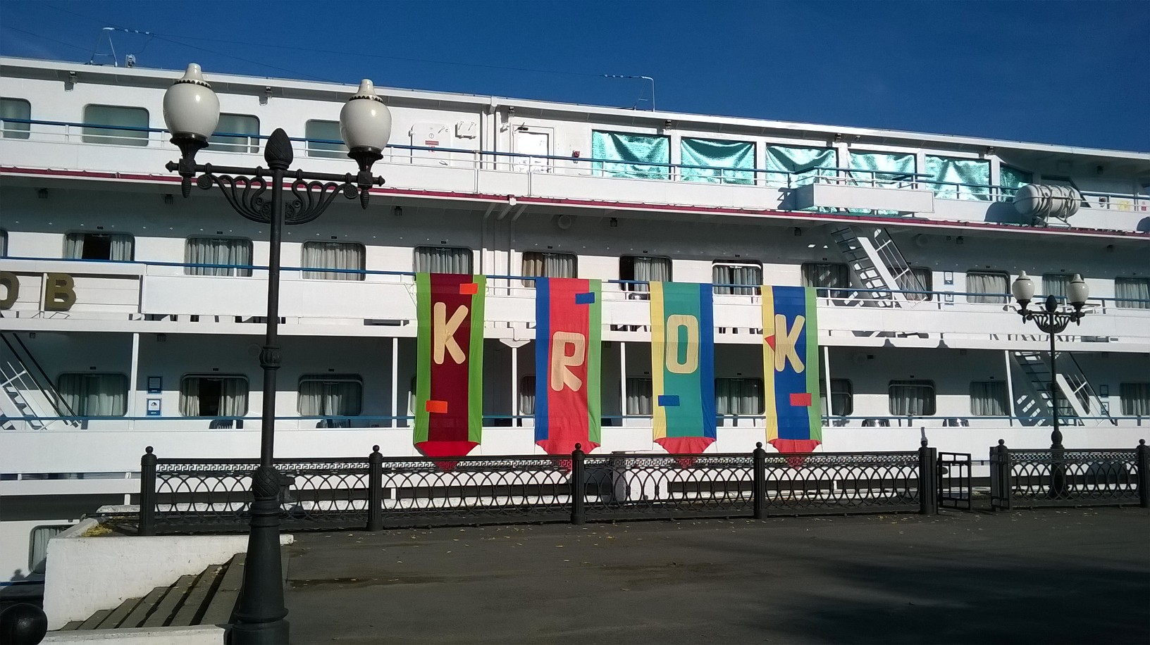 «Крок» был очень рад пригласить маленьких зрителей к себе в гости, а также сам приехать к ним. Даже несмотря на то, что по традиции этот фестиваль мультфильмов проводится на плывущем теплоходе. И на этот раз его плавание проходило по Волге, по маршруту Москва-Тверь-Углич-Мышкин-Череповец-Кострома-Плес-Ярославль. Практически во всех этих городах, стоило теплоходу причалить к берегу, на борт дружно шагали дети за руку с родителями или же во главе с учителями. А им навстречу тянулись участники фестиваля, желающие осмотреть местные достопримечательности.