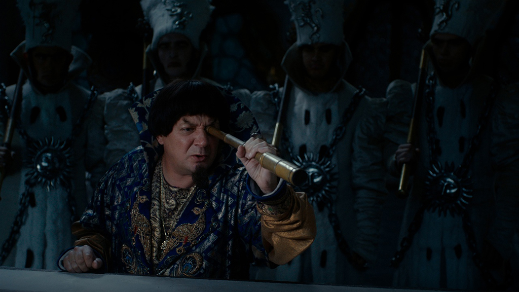 Для фильма с древнерусской атмосферой и музыкальные композиции нужно подобрать соответствующие. На фоне приключений героев в «Коньке-горбунке» очень органично звучат современенные версии русских народных песен, и не только — во сне царя неожиданно засветилась группа Little Big с одним из своих популярных хитов.