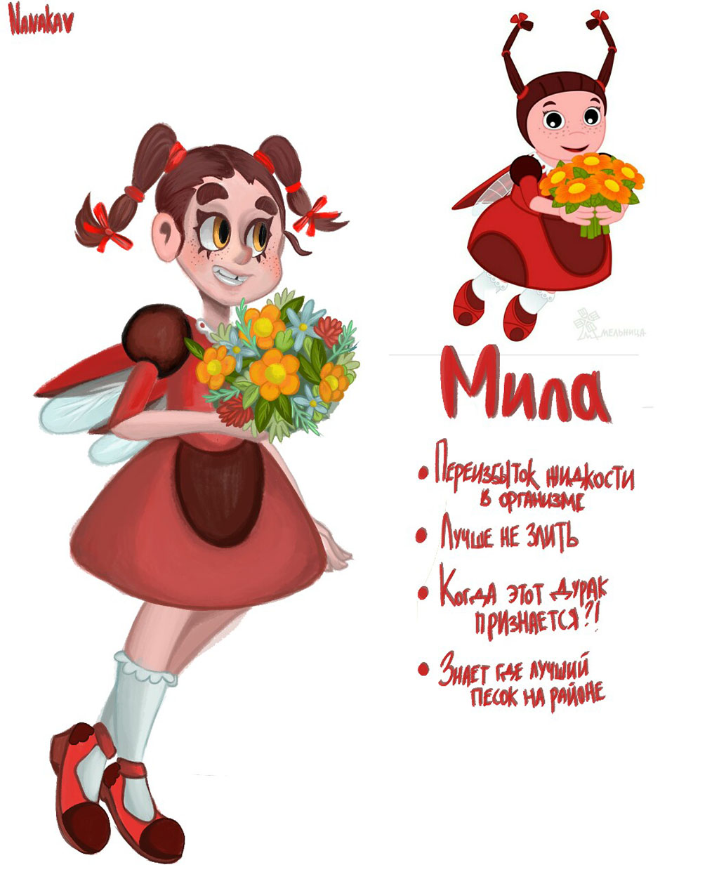 Художница с ником AnaLesnay соединила хуманизации героев «Лунтика» с «Чародейками» и «Фиксиками»: Ирма стала Лунтиком, Корнелия Кузей, а Хай Лин — фиксиком Игреком