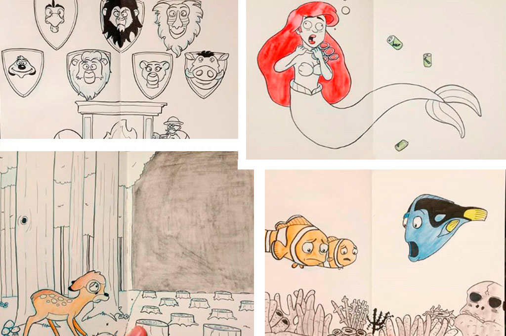 Художник изобразил героев мультфильма, столкнувшихся с экологическими проблемами