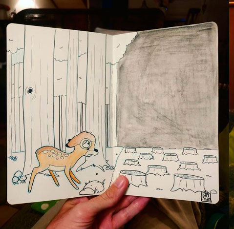 Тема экологии — важная и нужная, забывать о ней ни в коем случае нельзя. А способ, которым Драусин решил её поднять, явно необычный. Посмотрите подборку иллюстраций и, надеемся, в следующий раз вы не бросите мусор под ноги, не дойдя до урны, ведь забота об окружающей среде начинается с мелочей.