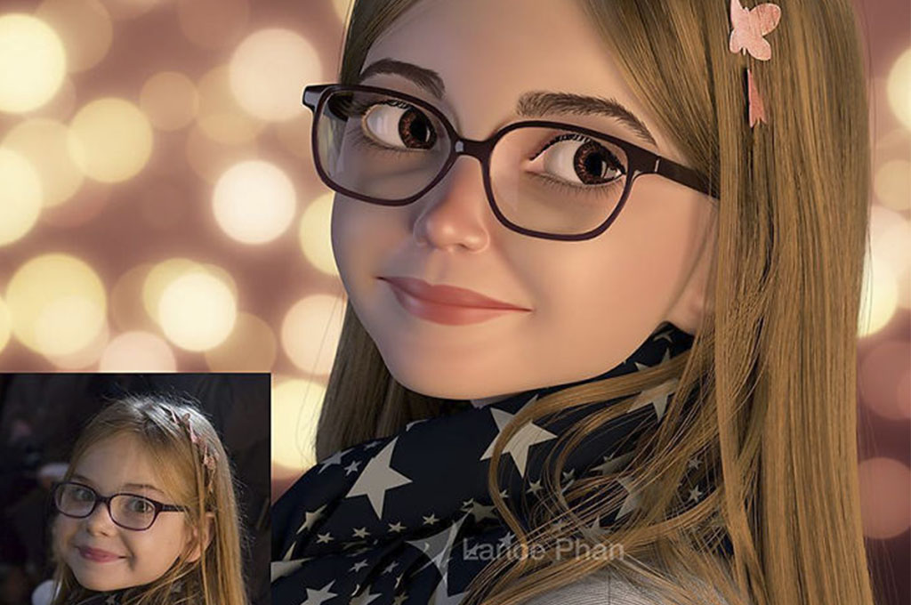 Кстати, он берет заказы! Так что у вас есть шанс подарить своей дочке на день рождения ее портрет в стиле Pixar!