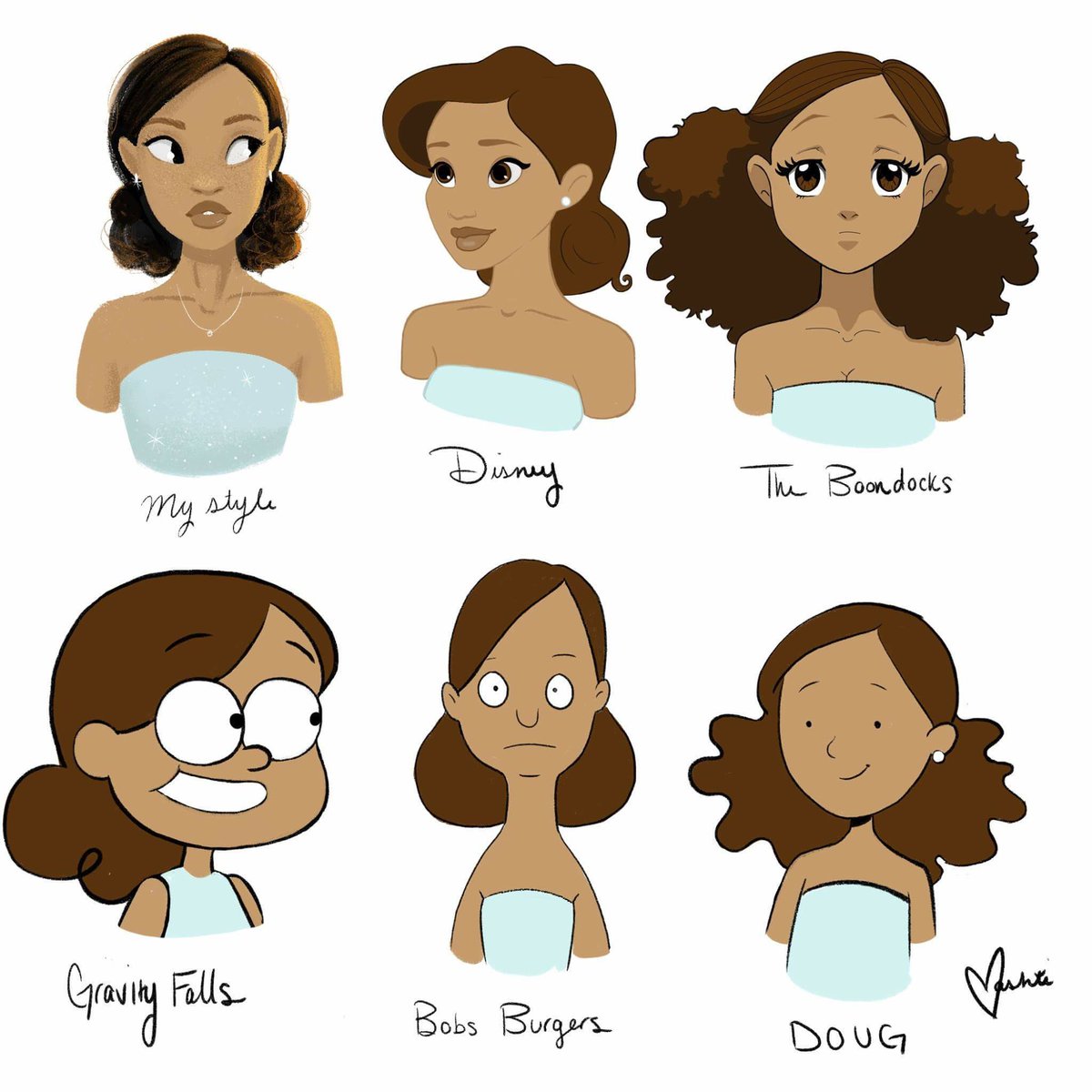 Известная художница Vashti Harrison тоже приняла участие во флешмобе: она нарисовала собственный портрет в стиле мультфильма для взрослых «Гетто», студии Disney, «Гравити Фолз», «Закусочная Боба» и «Даг».