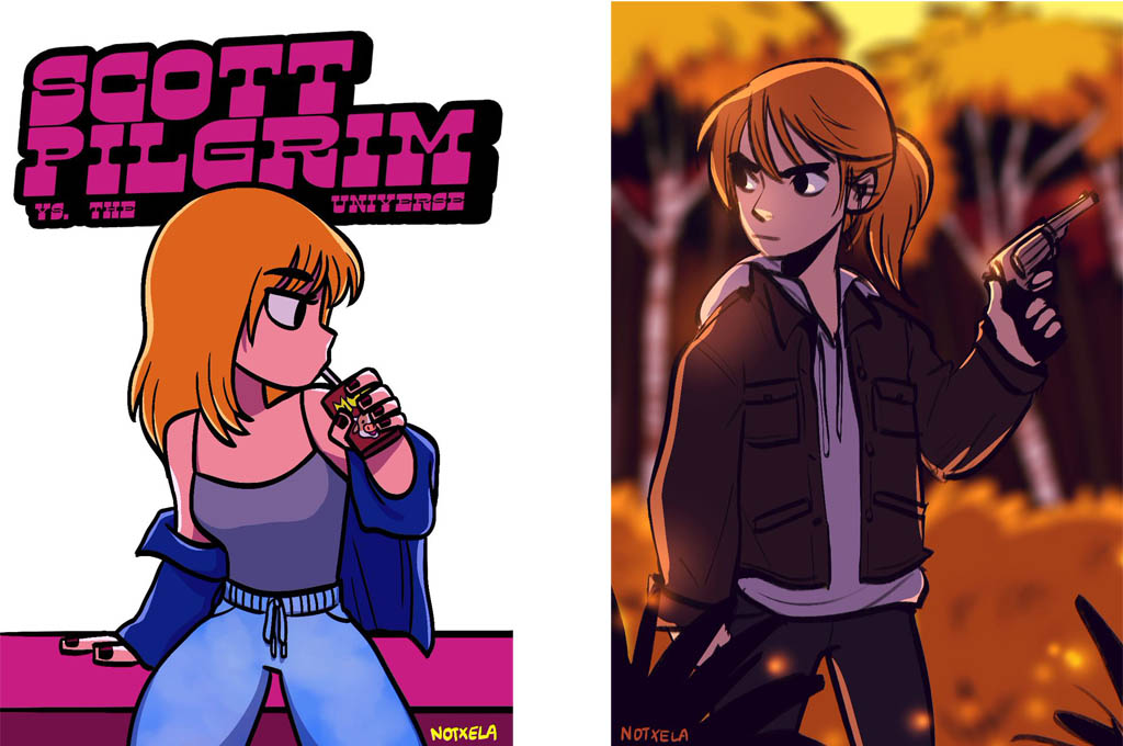Талантливая художница NotXela представила себя в облике четырёх героев из любимых мультфильмов и не только. Смотрите, как классно у неё это получилось! Вот её автопортрет в стилистике комиксов про Скотта Пилигрима: