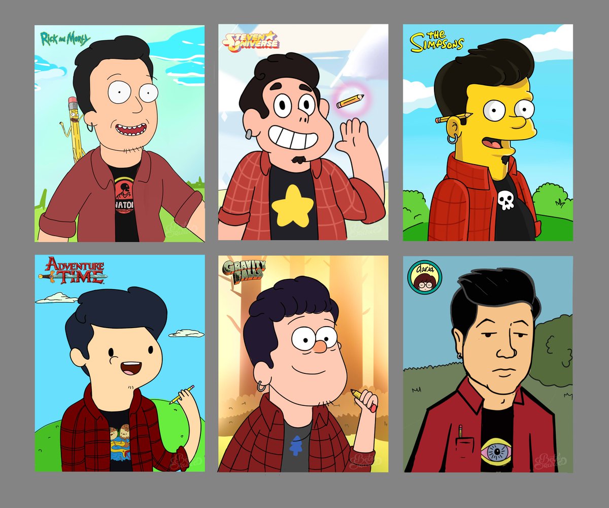 Нашёлся тут и очень талантливый парень. Художник с ником Betosaurio изобразил себя в таких мультфильмах, как «Рик и Морти», «Вселенная Стивена», «Симпсоны», «Время Приключений», «Гравити Фолз» и «Дарья».