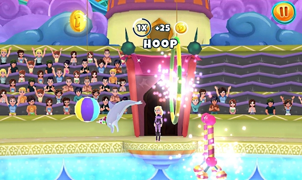 Дельфинарий — это весело и очень интересно. Всем, а особенно детям, нравится наблюдать за разнообразными трюками, которые исполняют ловкие дельфины. Но работать в дельфинарии еще интересней! Тренируем с нашим дельфином номера: игра с мячом, поиск предметов и другие. А потом участвуем в шоу, выполняя те или иные задачи: прыгаем через кольца, совершаем кульбиты, собираем монетки и рыбу.