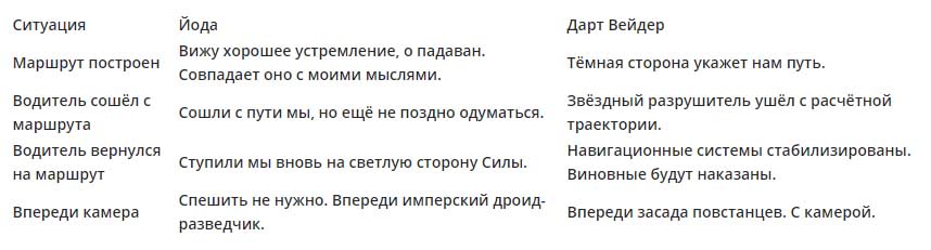 «Направо поверни через 600 метров ты. Осторожно, столкновение крейсеров в ряду левом» — примерно это вы сможете услышать в собственном автомобиле уже совсем скоро. К выходу восьмого эпизода «Звездных войн» Яндекс. Навигатор заговорит новыми голосами: актеры российского дубляжа, отвечающие за магистра Йоду и Дарта Вейдера, записали более сотни реплик на радость фанатам знаменитой киносаги.