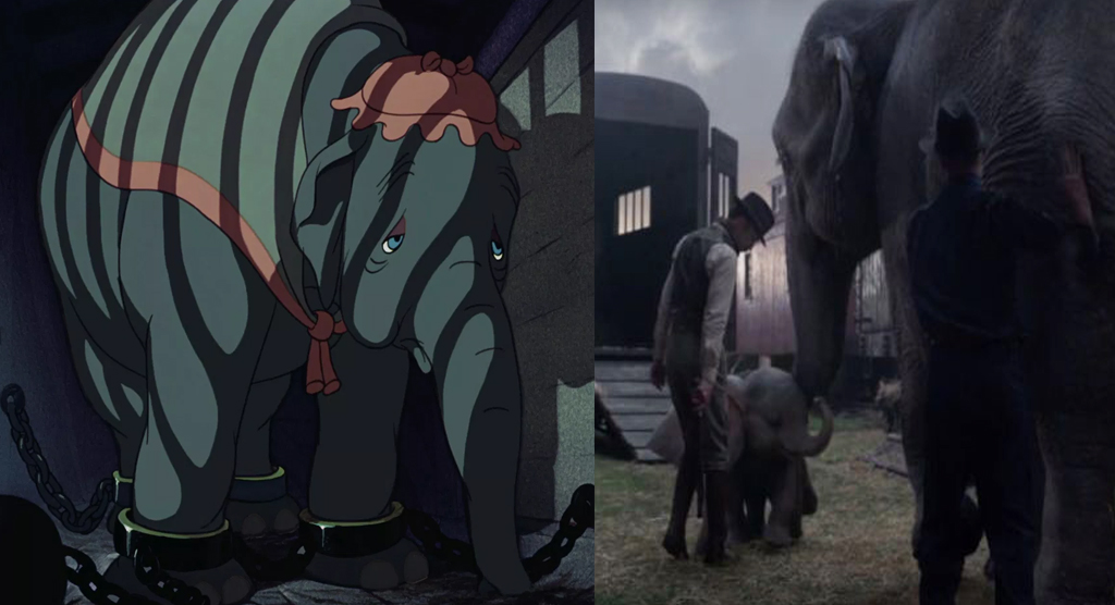 Животных, тем более говорящих, в фильме стало значительно меньше. Точнее, так: животные в фильме были, но совсем не в таком количестве, как в оригинальной анимационной ленте. И они не разговаривали. В качестве критиков Дамбо в фильме выступали люди, но на их месте несложно представить всё тех же ворчливых слоних из мультфильма.