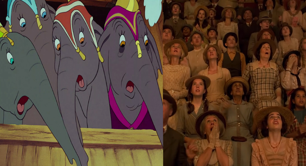 Даже табличка «mad elephant» была перенесена в кино. Маме Дамбо, как и в мультфильме, пришлось несладко, но без этой печальной ветки событий обойтись было нельзя.