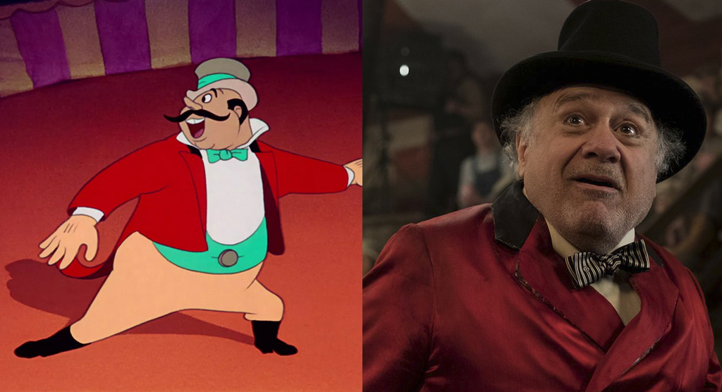 В оригинале роль людей была практически несущественной. Но в фильме им отводилось много экранного времени, и персонажи были раскрыты на уровне самого Дамбо. Дэнни де Вито показал переменчивую человеческую натуру, его персонаж сначала, как мог, закрывал финансовые дыры, а после обещания золотых гор продал свой цирк с потрохами. Но даже в такой ситуации он смог измениться.