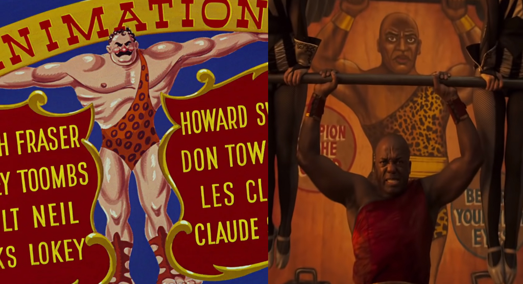 Этот персонаж в мультфильме не был толком представлен и показался лишь в начальных титрах. В версии Бёртона у силача роль намного важнее. Он не просто способен поднимать большие грузы, но ещё и умеет считать (и ведёт бухгалтерию цирка), играет на музыкальных инструментах и отлично ориентируется в стрессовых ситуациях. Его первое место в нашем параде неоспоримо.