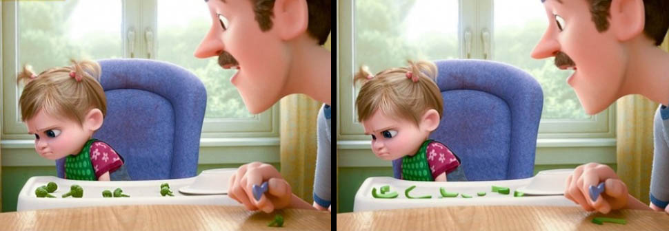 «Головоломку» готовили к экспорту особо тщательно. 28 изменений для 45 кадров! Например, брокколи для Японии заменили на зелёный перец. Маленькие японцы просто обожают брокколи, и с Райли они были бы крайне не согласны в данном вкусовом вопросе.