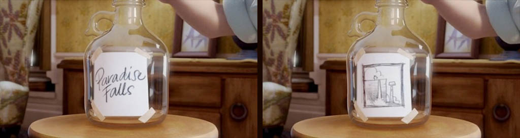 Аналогичным образом обошлись с заменой надписи на рисунок в мультфильме «Вверх». Кажется, что адаптированная почеркушка с водопадом смотрится даже органичнее, чем простое название.