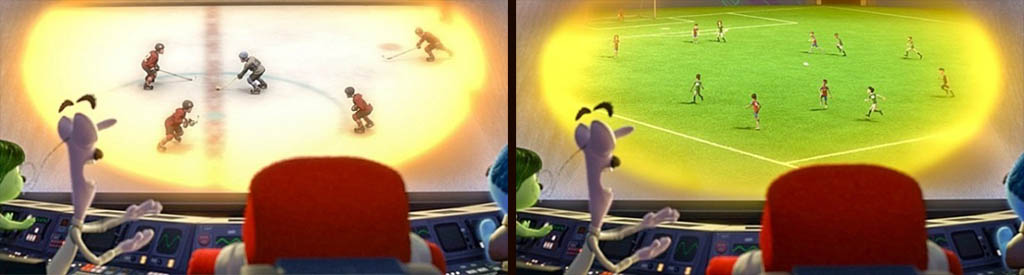 В американской версии мультика эмоции в голове у папы смотрят хоккей. Для всего остального мира (кроме стран с особым национальным уколоном в спорт) хоккей перерисовали на футбол, как более известный вид спорта.