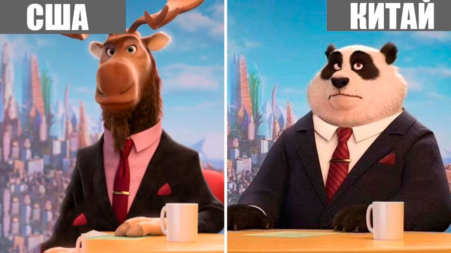 Ведущие новостей в «Зверополисе» тоже для разных стран свои. Нам показывали лося, у китайцев это панда, у британцев — корги, и так далее.