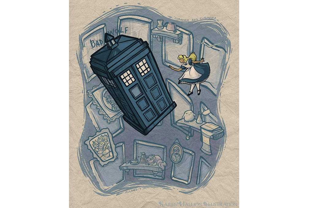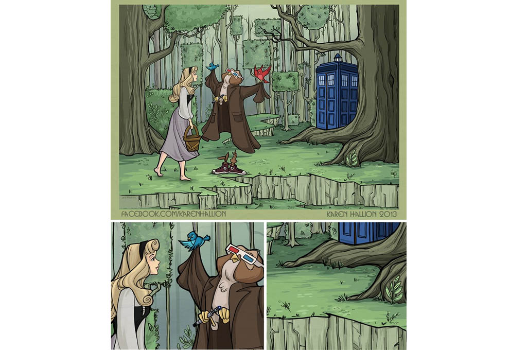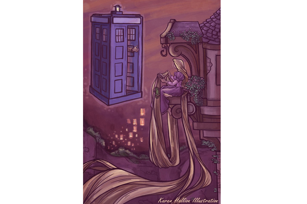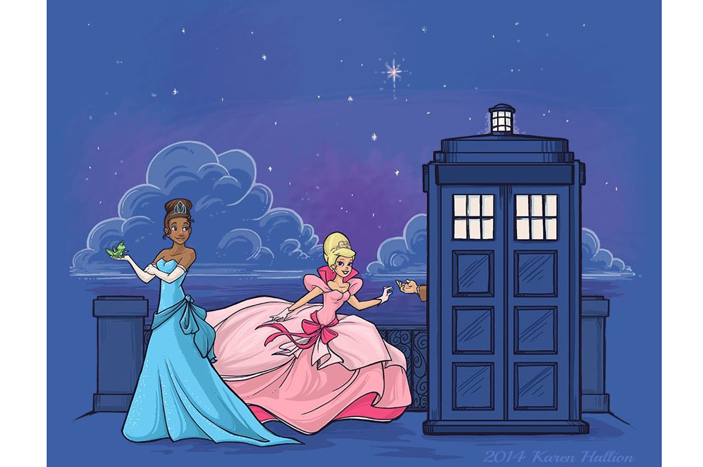 Давайте посмотрим, как художница Karen Hallion рисует героев Disney, познакомившихся с Повелителем Времени и синей будкой ТАРДИС.