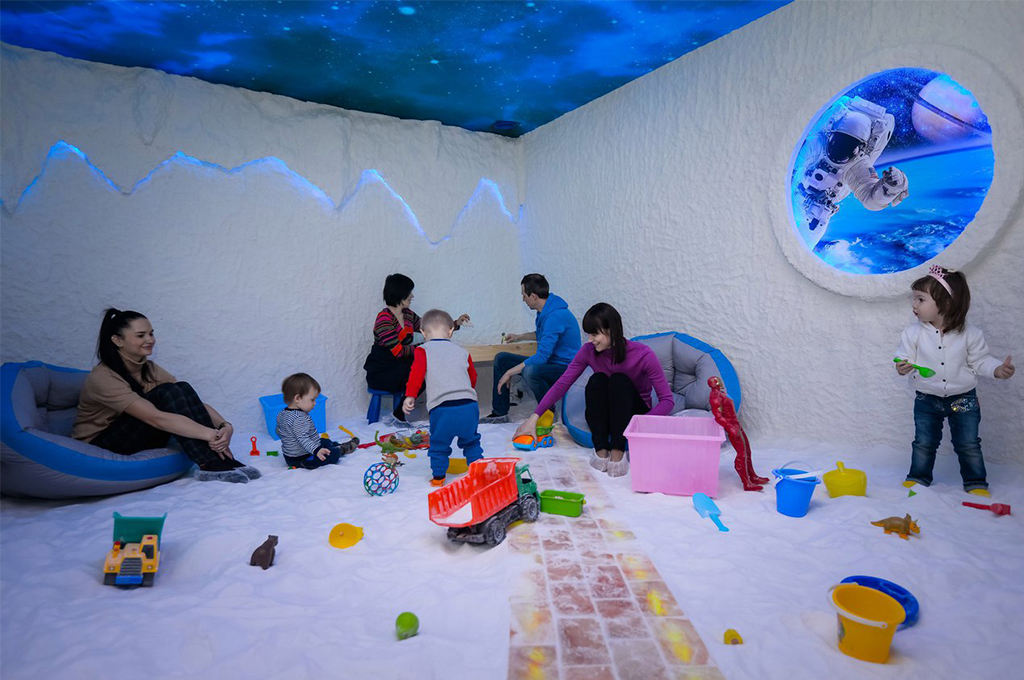 А тем, кто хочет провести время еще и с пользой для здоровья, после всех приключений, стоит зайти в «Хэпписоль». Это соляная комната, в которой взрослые могут отдохнуть и расслабиться с помощью аудио- и хромотерапии, а дети — поиграть в соляной песочнице и порисовать солью на световом планшете.