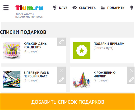 Не знаете, что подарить маленькому фанату «Ми-ми-мишек»? Не проблема. Не знаете, как распределить подарки между бесконечным количеством родственников? Тоже не проблема. Во всем этом вам поможет Tlum.Ru и наш сервис «Мои подарки».