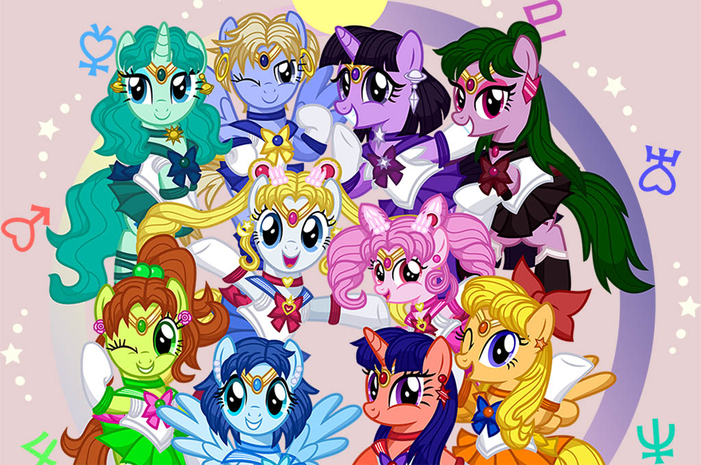 Как связаны мультсериал «Мой маленький пони: Дружба — это чудо» и аниме «Красавица-воин Сейлор Мун», кроме того, что оба они про команды наделённых способностями героинь? Вот и мы не знали до того момента, пока не увидели забавные и яркие работы художницы с ником MeganLovesAngryBirds, которая превращает героинь мультсериала «Мой маленький пони» в самых разных персонажей.