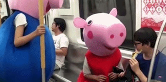 В Китае в городе Ухань провинции Хубэй в метро появились патрульные в костюмах Свинки Пеппы. И это не одноразовый маскарад, а отдельный специальный отряд в костюмах, чья задача — работать со школьниками во время летних каникул и напоминать им о правилах поведения в метро.
