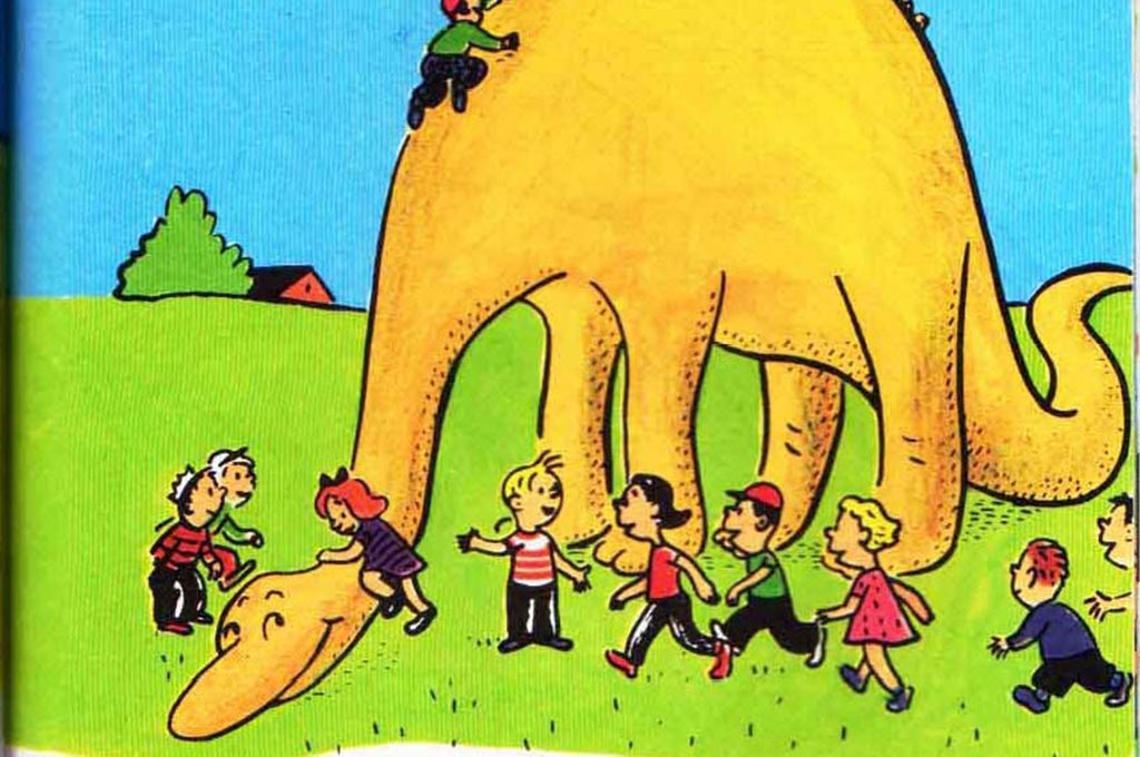 Это история, написанная Сидом Хоффом, рассказывает про мальчика Дэнни, которой идет в музей и встречает там динозавра. Динозавр оказывается живым и идет с ним на прогулку. Динозавр помогает людям, соблюдает правила дорожного движения, не ест газонную травку и вообще ведет себя, как очень порядочный и законопослушный гражданин. В конце дня, поиграв с детьми в прятки (динозавр в этом не очень силен), он возвращается в музей.
