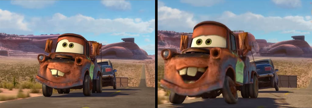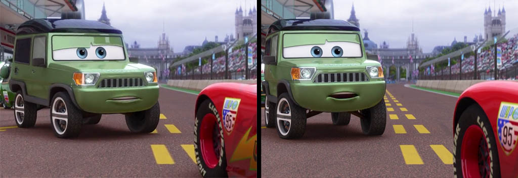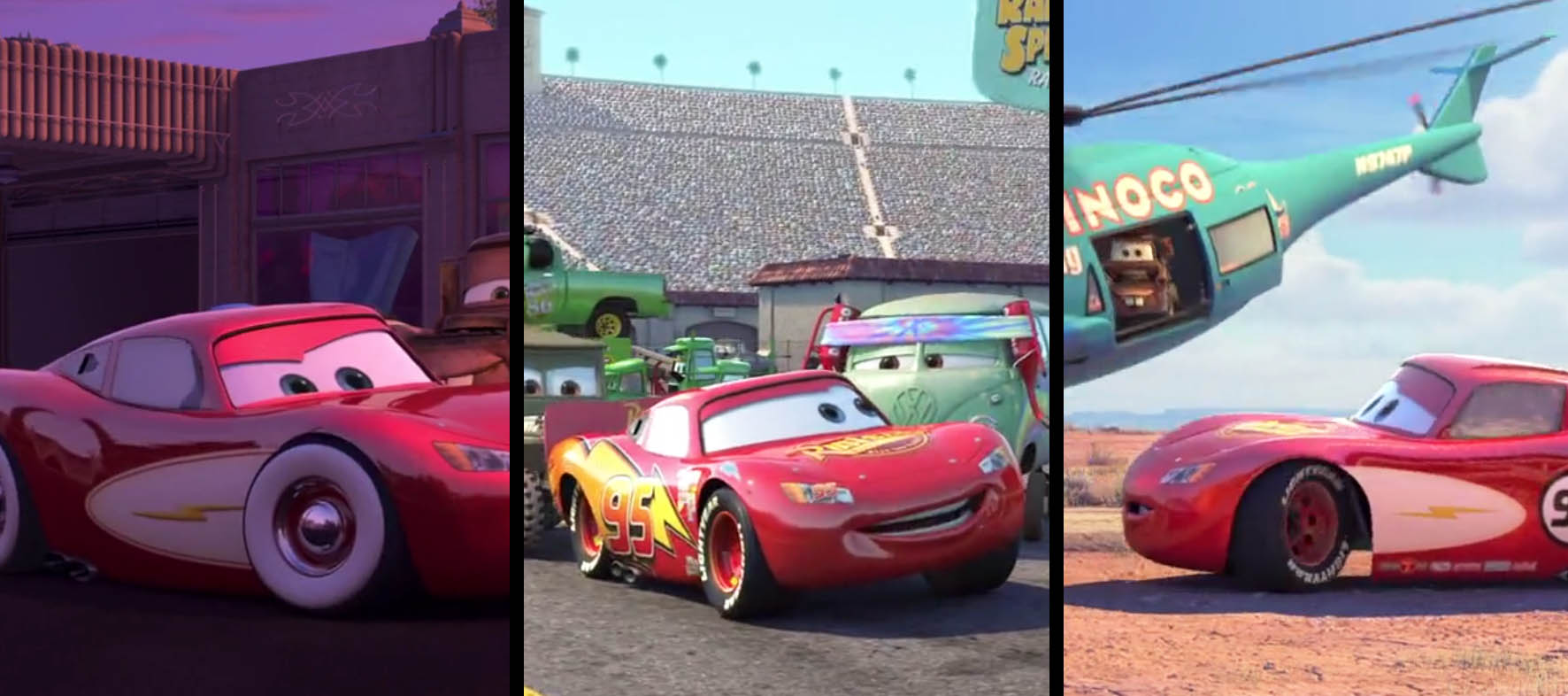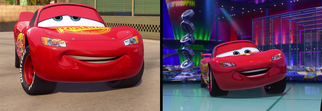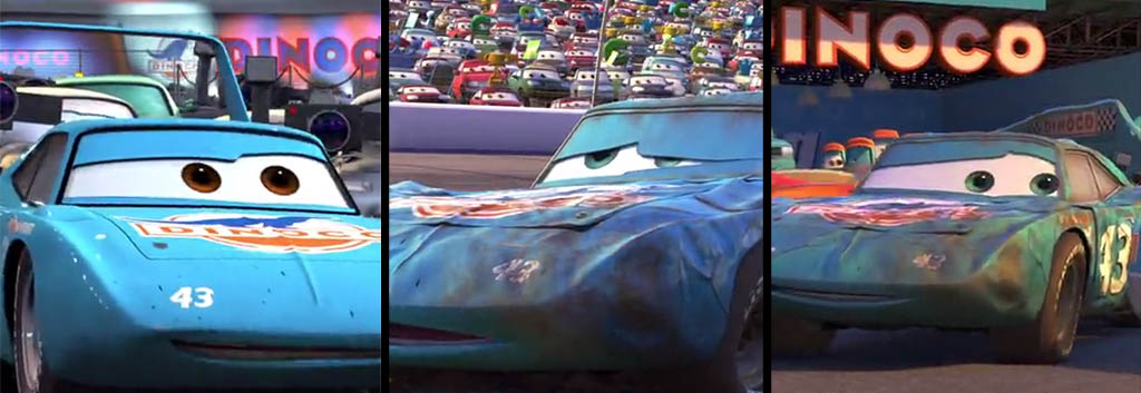 У гоночного «короля» Кинга в первых «Тачках» сначала синие глаза, после аварии — голубые, а дальше вообще кажутся зелеными. Это даже комментировать бессмысленно.