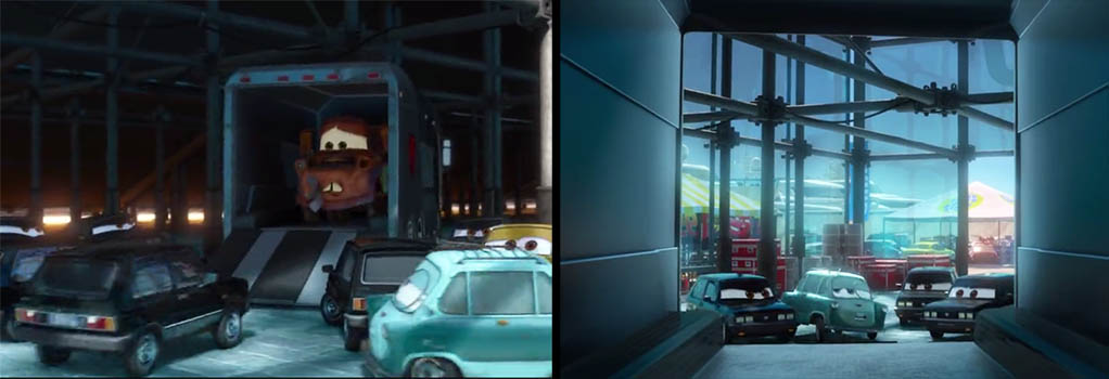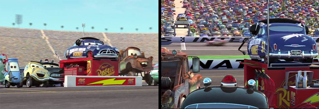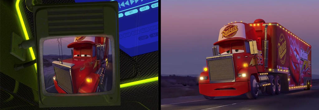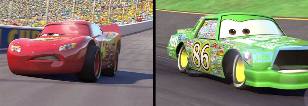 Лево и право в «Тачках» — тоже вопрос щепетильный. В финальной гонке первой части на Молнии отображается знак Чико в виде буквы «С», в неперевернутом виде, между прочим. Правила зеркального отражения? Нет, не этот случай.