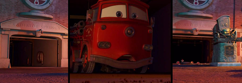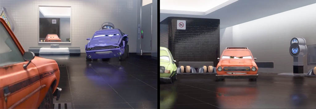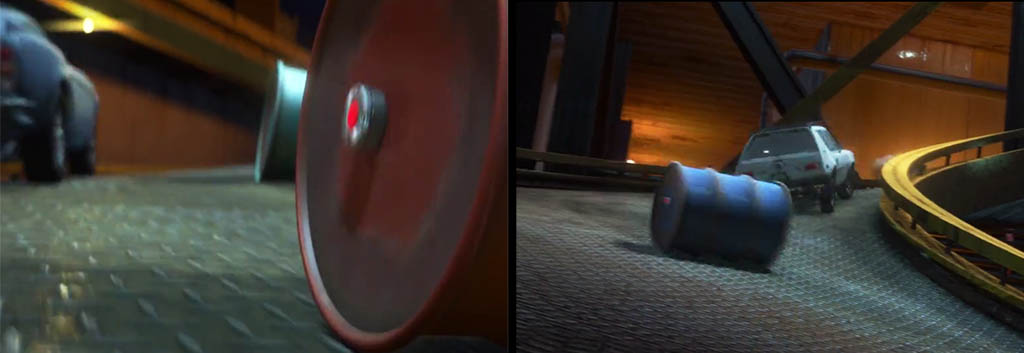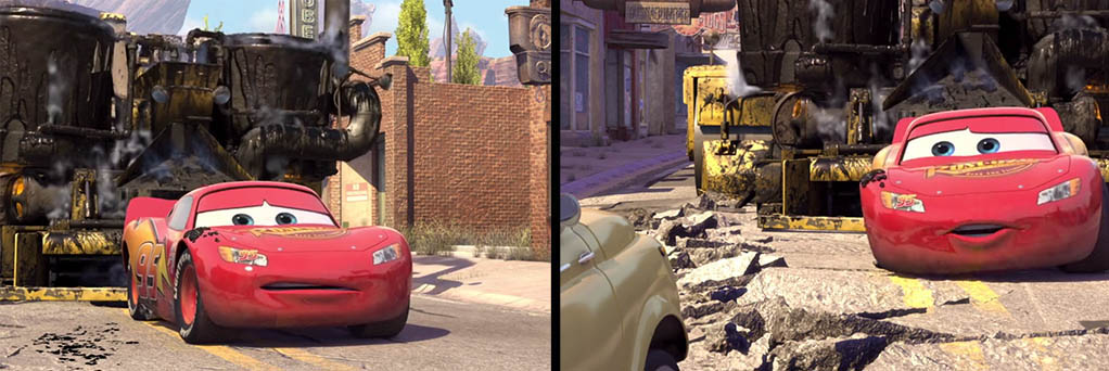 Прежде всего стоит отметить, что далеко не только техника в мире «Тачек» обладает разумом и самостоятельностью. Свой характер регулярно показывают и другие предметы, в особенности это относится к полам и другим поверхностям, по которым катаются герои. Про такие скучные вещи, как предельно быстрое исчезновение следов покрышек на асфальте, даже вспоминать не будем. А вот пропажа сточной решетки в мудреном туалете во вторых «Тачках» — момент вполне показательный.