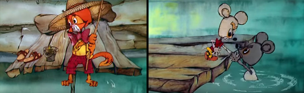 В принципе все эти «косяки» легко объясняются сложной техникой, в которой были выполнены первые два эпизода приключений кота Леопольда: она называется перекладкой и представляет собой покадровые перемещения двухмерных объектов (читай рисунков) на плоской поверхности. Как своеобразные марионетки, только плоские. Любое случайное дуновение ветерка — и экспозиция уже изменилась, потому ляпы здесь совершенно неудивительны. Однако в классической рисованной анимации, в которую перешли все последующие эпизоды, ошибки остаются уже на усмотрении мультипликаторов. Мы уже не раз говорили, что это очень веселые люди. И еще не раз скажем.